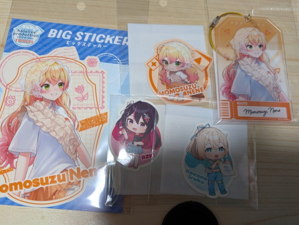そしてステッカー類、アクリルラゲッジタグだ。